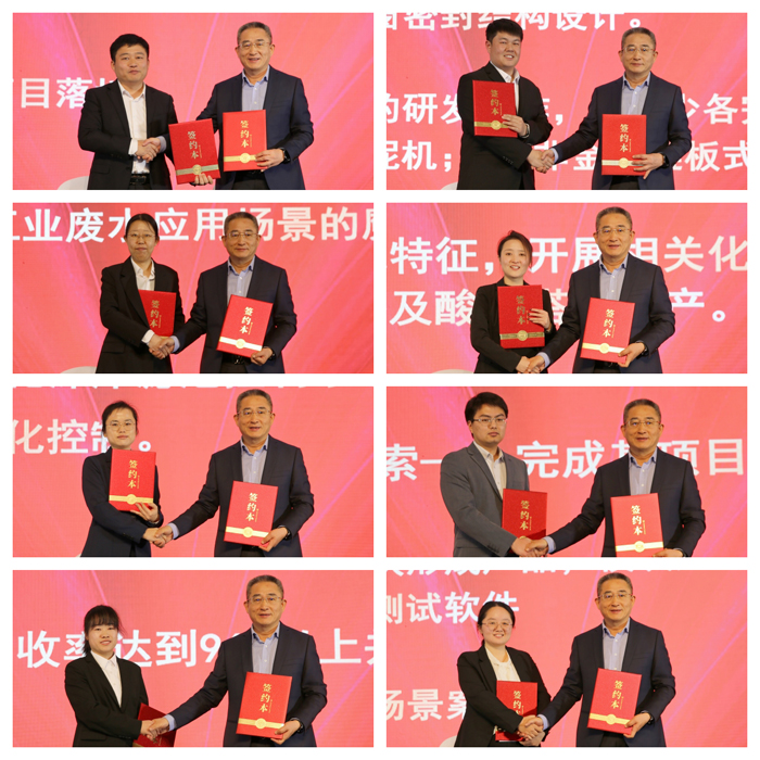 盛典在市經開區(qū)管委會副主任方強的致辭中拉開了帷幕,在接下來的產品推介會上,來自裝配式水廠、深床反硝化濾池系統(tǒng)、高效/磁混凝系統(tǒng)、BAF智慧工藝、臭廢氣收集及處理系統(tǒng)、工業(yè)物聯(lián)智能控制產品及系統(tǒng)、魔方智水產品、環(huán)保非標設備八個團隊的產品經理從市場角度出發(fā),分享了各自技術化產品的新功能、新亮點以及產生的效益,并規(guī)劃了2025年的市場工作、產品應用場景擴展、升級的思路及目標。隨后,會議舉行了八位產品經理與副董事長鄭俊簽約及市場銷售人員誓師儀式。