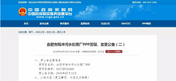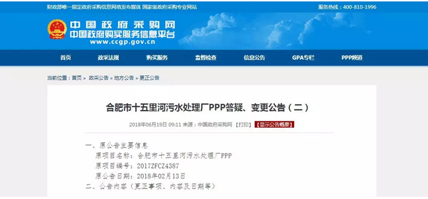 近日,備受關(guān)注的合肥市十五里河污水處理廠、合肥市陶沖污水處理廠兩大PPP項目同時發(fā)布答疑、變更公告,將開標(biāo)時間(投標(biāo)截止時間)變更為2018年7月10日9:30。距離原定開標(biāo)時間過去2個月,這兩大污水廠即將再次展開爭奪戰(zhàn)。