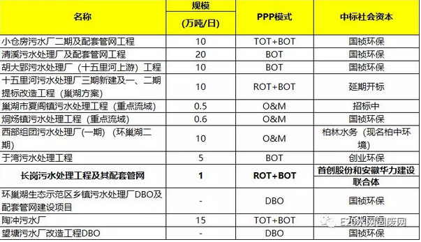 合肥市“十三五”期間已落地/招標(biāo)污水處理項目清單