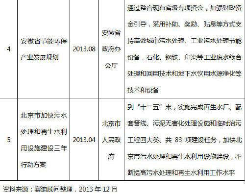 表 1 2013年部分支持污水處理行業(yè)發(fā)展的政策