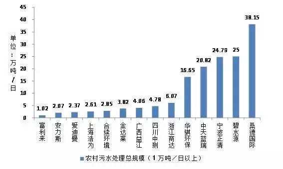 其中,農(nóng)村污水處理總規(guī)模大于1萬(wàn)噸/日以上企業(yè)排名如下圖所示: