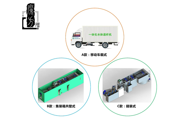 第三套系列產(chǎn)品——“魔方磁”,產(chǎn)品是專門針對黑臭水體以及應(yīng)急水體處理設(shè)計的,采用“水體凈化透析技術(shù)”對前段磁混凝后的磁泥與水進(jìn)行多效澄清及純化,比重較大的剩余泥磁與比重較小的凈化水則會發(fā)生固液逆向流動及透析分離,進(jìn)而得到澄清的凈化水,主要去除污水中TP、SS、色度和部分有機物??梢宰鳛榧b箱裝在車上,使用靈活方便。它與生態(tài)處理結(jié)合在一起,可以實現(xiàn)黑臭水體的快速徹底修復(fù)。其單套處理規(guī)模為1500-10000噸/天。