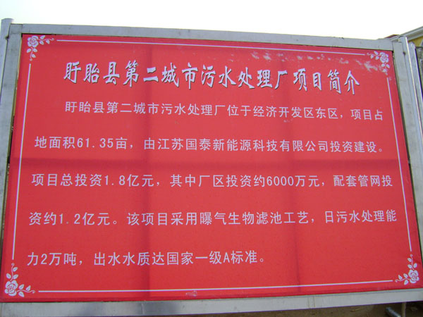 盱眙縣第二城市污水處理廠位于盱眙經(jīng)濟(jì)開發(fā)區(qū)內(nèi),為BOT項(xiàng)目,設(shè)計(jì)規(guī)模為4萬噸/日,分兩期建設(shè),一期工程2萬噸/日。