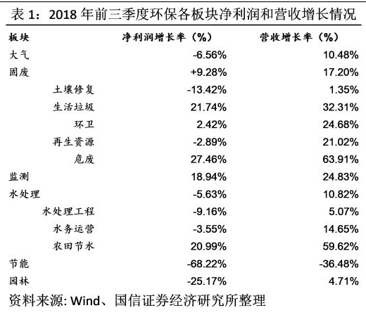 我們分析環(huán)保生態(tài)行業(yè)中大氣、固廢、水務(wù)、監(jiān)測、節(jié)能和園林六大板塊的65家公司的2018年三季報情況。同時根據(jù)板塊內(nèi)部公司的具體業(yè)務(wù),將固廢、水務(wù)兩大板塊進一步拆分,將固廢板塊分為生活垃圾、危廢、環(huán)衛(wèi)、土壤修復、再生資源5個細分子板塊,將水務(wù)板塊分為水處理工程、水務(wù)運營2個細分子版塊,從各項指標詳細分析了環(huán)保行業(yè)整體的發(fā)展情況。
