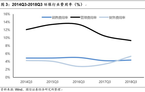 前三季度環(huán)保板塊總體的財務(wù)費用率為5.33%,同比提高了1.97pct,增幅明顯,而管理費用率和銷售費用率兩項指標均有所下滑,表明環(huán)保企業(yè)前三季承擔著巨大的資金成本上行壓力,同時盡可能地壓縮內(nèi)部成本,降低銷售和管理費用,以期熬過寒冬。