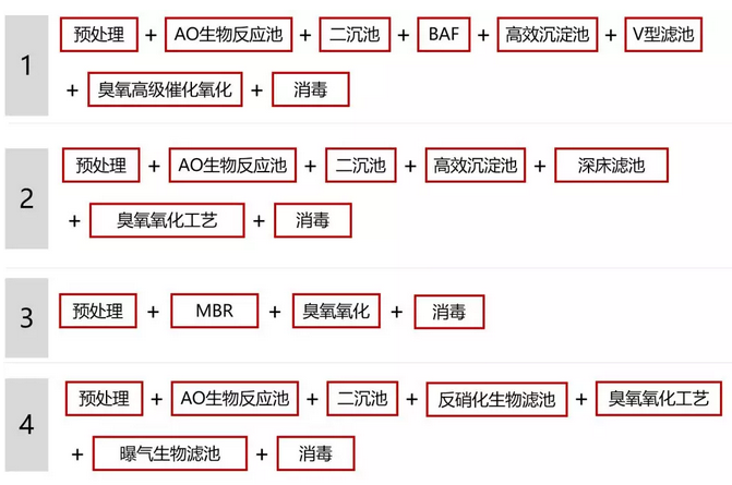 目前類IV類水標(biāo)準(zhǔn)下污水處理廠的大體工藝路線為以下四種類型,被業(yè)內(nèi)評(píng)價(jià)為:這是將能用的技術(shù)都用上了,長流程、高耗能、高化學(xué)品投入,更復(fù)雜的運(yùn)行管理,以及更為昂貴的建設(shè)運(yùn)行費(fèi)用,使得穩(wěn)定達(dá)標(biāo)的技術(shù)可行性、經(jīng)濟(jì)性等面臨非常大的挑戰(zhàn)。