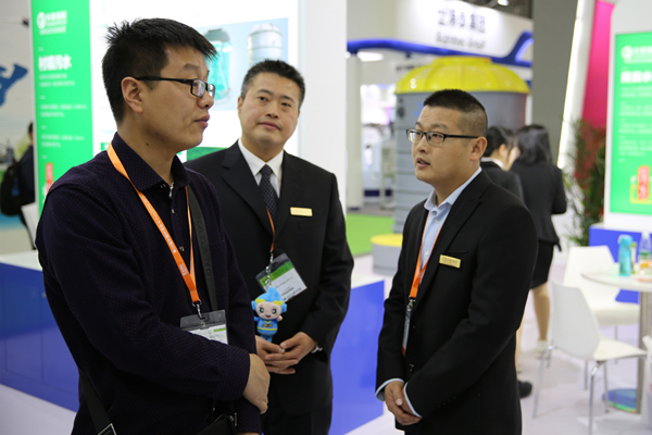 蘇伊士亞洲地區(qū)執(zhí)行副總裁孫明華(左二)參觀展位