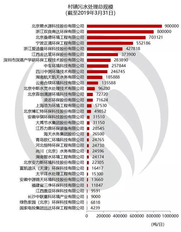 備注:該排名為企業(yè)中標(biāo)簽約且參與項(xiàng)目運(yùn)營維護(hù)的鄉(xiāng)鎮(zhèn)污水處理項(xiàng)目設(shè)計(jì)能力加總。