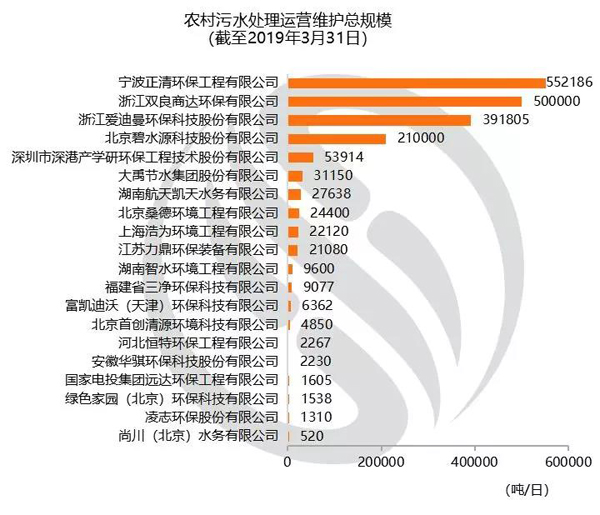 備注:該排名為企業(yè)中標(biāo)簽約且參與項(xiàng)目運(yùn)營維護(hù)的農(nóng)村污水處理項(xiàng)目設(shè)計(jì)能力加總。
