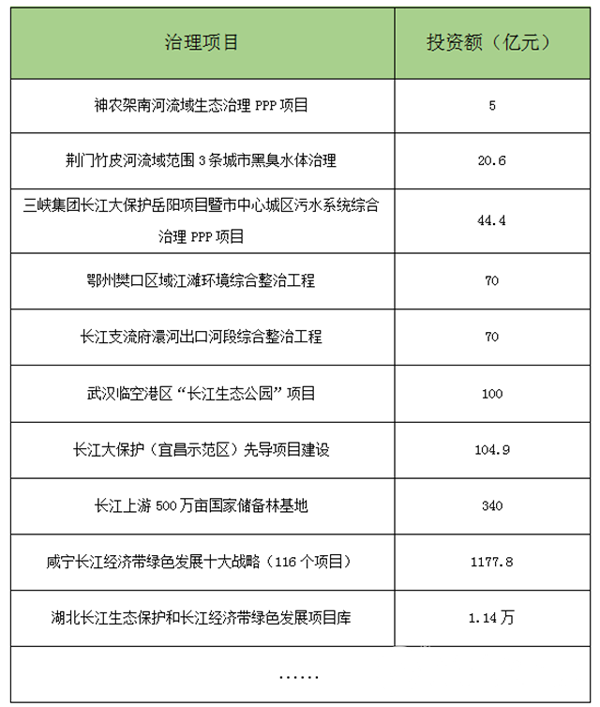 當(dāng)然,長江生態(tài)環(huán)境保護(hù)作為一個系統(tǒng)性工程,要打一場持久戰(zhàn),其資本投入體量一定是巨大的,僅從部分治理項目的投資上就能看到端倪。