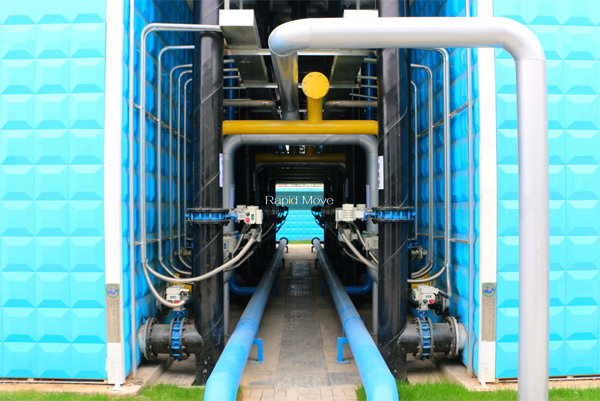 合肥市南淝河流域應(yīng)急污水處理服務(wù)樅陽路泵站工程占地約1053.5m2,設(shè)計處理能力5000m3/d,采用我司研發(fā)的Rapid-Move黑臭水體旁路處理系統(tǒng)——“魔方磁(磁混凝系統(tǒng))+魔方尊(BAF系統(tǒng))”組合工藝產(chǎn)品。進(jìn)水從幸福路下方自流箱涵末端取水,當(dāng)水量不足時,從樅陽排澇泵站進(jìn)水前池泵提取水或?yàn)I河路污水管網(wǎng)泵提取水,出水通過管道接入樅陽排澇泵站出水箱涵。