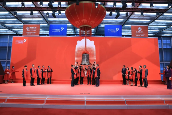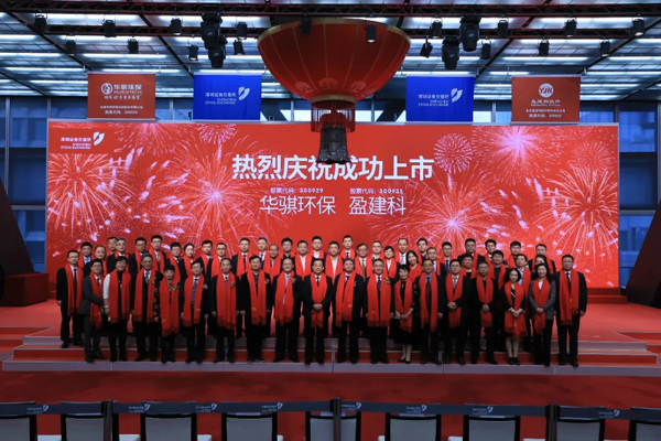 總經(jīng)理鄭杰(中)代表華騏環(huán)保敲響開市寶鐘