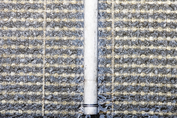 保持足夠的溶解氧濃度是維持曝氣生物濾池內(nèi)好氧生物膜高活性、對有機物和氨氮的高去除率的必備條件。曝氣系統(tǒng)采用豐字型曝氣形式,主要由曝氣分配器及支管、單孔膜空氣擴散器、固定支架等單元構(gòu)成。