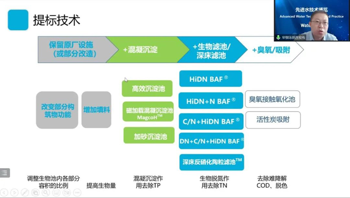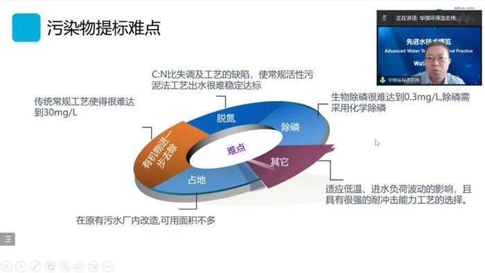 針對污水廠提標(biāo)改造面臨的難題,連宏偉介紹了華騏環(huán)保的系統(tǒng)解決方案: