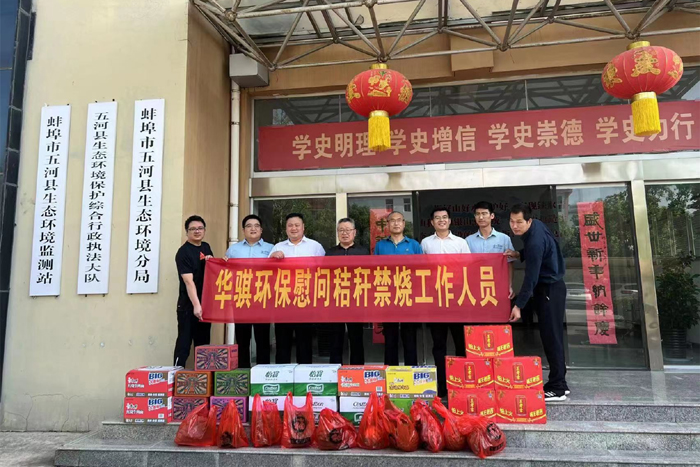 秸稈禁燒工作事關(guān)生態(tài)文明建設(shè)、事關(guān)環(huán)境空氣質(zhì)量改善、事關(guān)保障人民群眾身體健康,作為一家積極踐行社會責(zé)任的企業(yè),華騏環(huán)保以高度的社會責(zé)任感和擔(dān)當精神投身公益事業(yè),其旗下的五河縣華騏水務(wù)有限公司、五河華騏南部污水處理有限公司、五河中騏水務(wù)有限公司的工作人員分別前往五河縣片區(qū)五河縣生態(tài)環(huán)境保護局點、東劉集鎮(zhèn)點、朱頂鎮(zhèn)等點位,固鎮(zhèn)縣片區(qū)黃莊村、黃圩村、胡洼村、蘇湖村等點位看望慰問高溫期間仍堅守在田間地頭的一線秸稈禁燒工作人員。各個禁燒點的工作人員吃在一線、睡在一線,頂著持續(xù)多日的高溫、克服蚊蟲叮咬,履行自己的職責(zé),為守護五河縣、固鎮(zhèn)縣的一片碧水藍天做出了無私的奉獻,他們身上那股“不怕吃苦,樂于奉獻”的精神感染了每一位前往慰問的華騏環(huán)保工作人員。