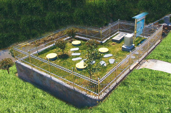 2. 污水處理系統(tǒng):日處理水量20m3/d,采用安徽華騏環(huán)??萍脊煞萦邢薰竟旧a(chǎn)的“魔方格”微動力污水處理裝置。