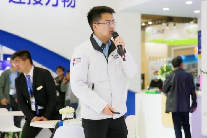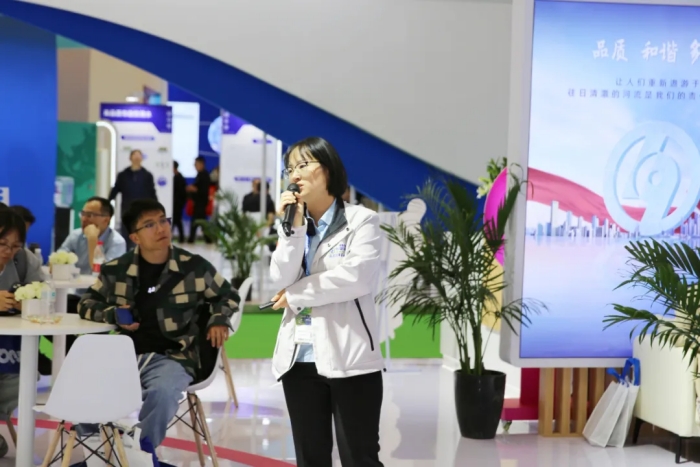 本屆環(huán)博會上,華騏環(huán)保積極與國內(nèi)外環(huán)保領(lǐng)域的專家學(xué)者和企業(yè)代表充分交流,共同探討環(huán)境污染治理領(lǐng)域的前沿技術(shù)與最新解決方案。華騏環(huán)保副總裁連宏偉在接受E20環(huán)境平臺采訪時指出,作為創(chuàng)業(yè)板上市公司、國家級“專精特新"小巨人企業(yè),華騏環(huán)保不斷提升自主創(chuàng)新水平,通過“一體多翼”的集團(tuán)化戰(zhàn)略布局,堅持走技術(shù)產(chǎn)品化的高質(zhì)量發(fā)展之路,加快形成新質(zhì)生產(chǎn)力,以新技術(shù)、新產(chǎn)品創(chuàng)造新價值,以“高質(zhì)服務(wù)”擘畫未來,以“智慧賦能”擎鑄未來。本次環(huán)博會,華騏環(huán)保的八位產(chǎn)品經(jīng)理現(xiàn)場分享了“BAF智慧工藝的探索與實踐”、“綠色低碳裝配式污水處理廠”、“魔方智水多維場景污水治理的實踐與思考”、“iMagcoH磁混凝沉淀池技術(shù)及應(yīng)用”、“iDebed深床反硝化濾池技術(shù)及應(yīng)用”、“臭廢氣收集及處理系統(tǒng)解決方案”、“智能控制器在環(huán)保領(lǐng)域的應(yīng)用與探討”等核心技術(shù)與裝備的精彩內(nèi)容,充分展現(xiàn)了華騏環(huán)保在水務(wù)行業(yè)領(lǐng)域的綜合實力,亮點(diǎn)紛呈、內(nèi)涵豐富,吸引了眾多與會嘉賓及業(yè)內(nèi)人士駐足聆聽、互動交流。