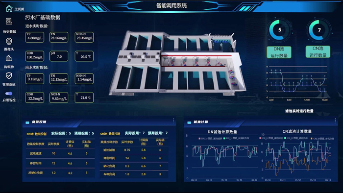 DN池、CN池運(yùn)行狀態(tài)可視化,處理水量、進(jìn)出水氨氮、濾池濾速、停留時(shí)間、反硝化負(fù)荷等實(shí)時(shí)數(shù)據(jù)“一屏掌控”,AI 人工智能與水廠運(yùn)營無縫銜接,提供精準(zhǔn)決策方案并高效執(zhí)行,藥耗節(jié)約10-20%,電耗節(jié)約15-25%……在五河縣城北污水處理廠,安徽華騏環(huán)??萍脊煞萦邢薰尽癇AF智慧濾池”已投入運(yùn)行一年多,數(shù)字化管理成效顯著,提高了運(yùn)營效率和經(jīng)濟(jì)效益。